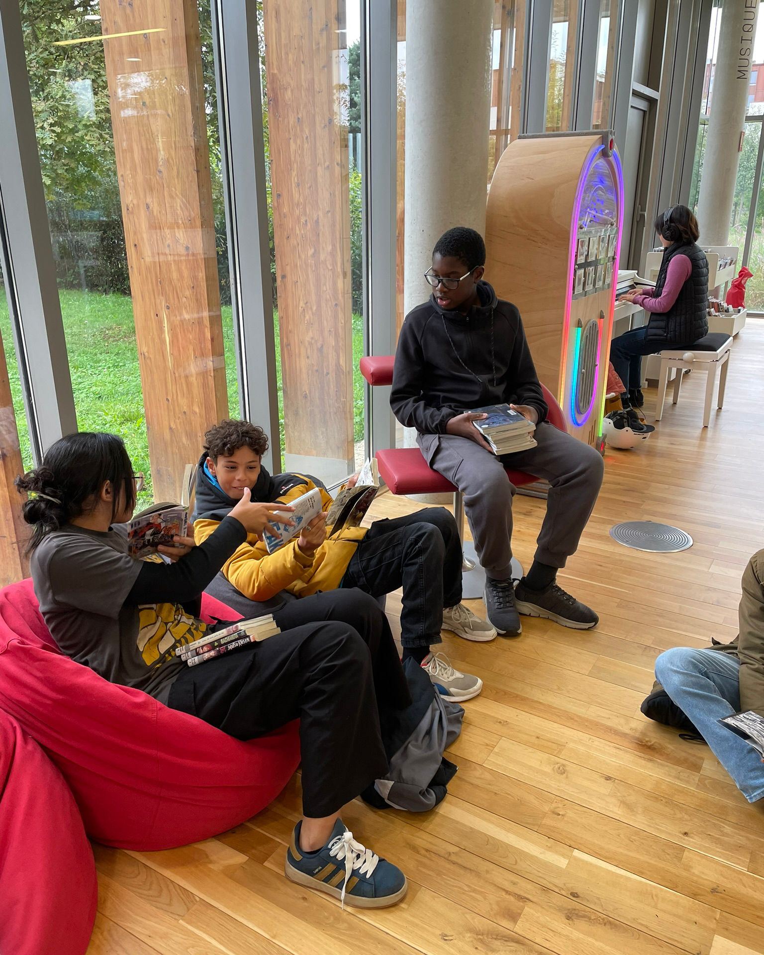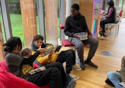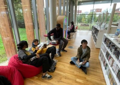 Après ces échanges passionnés, tout le groupe s’est posé 20 minutes à la bibliothèque pour :
